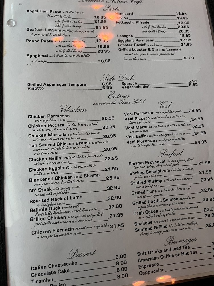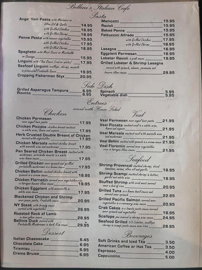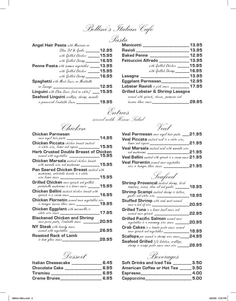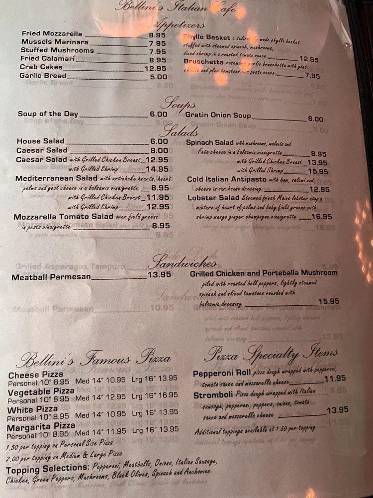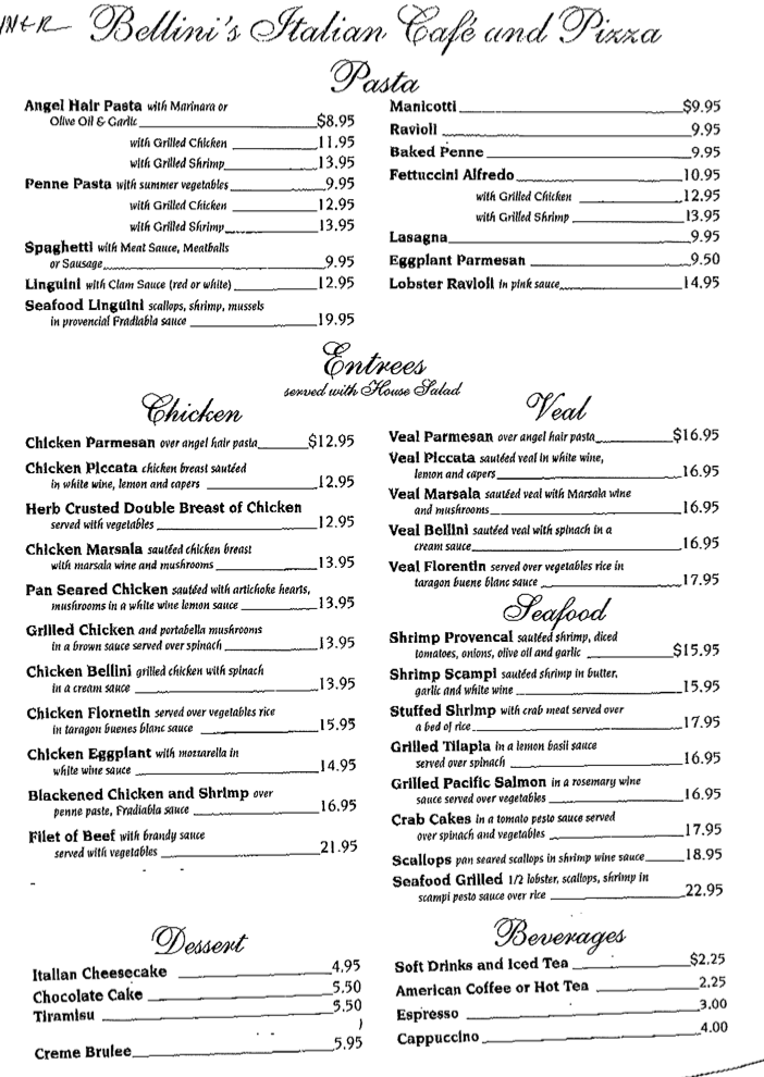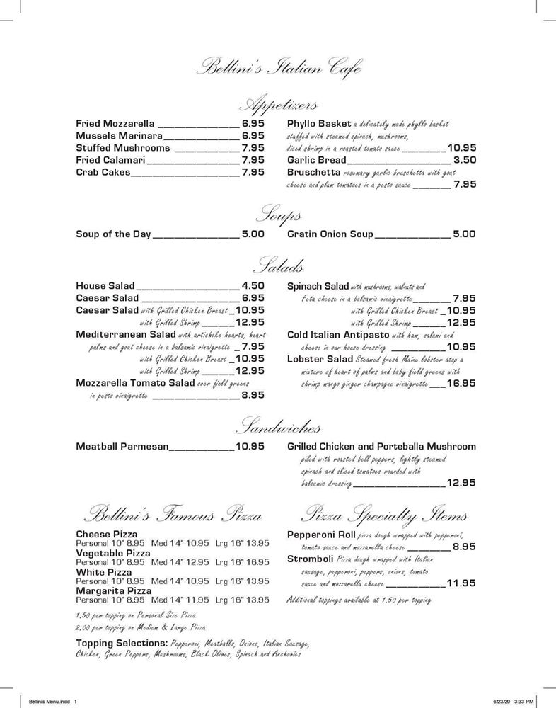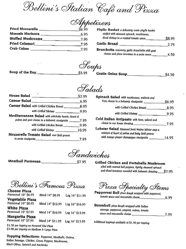 Bellini's Italian Cafe and Pizza Menu (Update 2025)